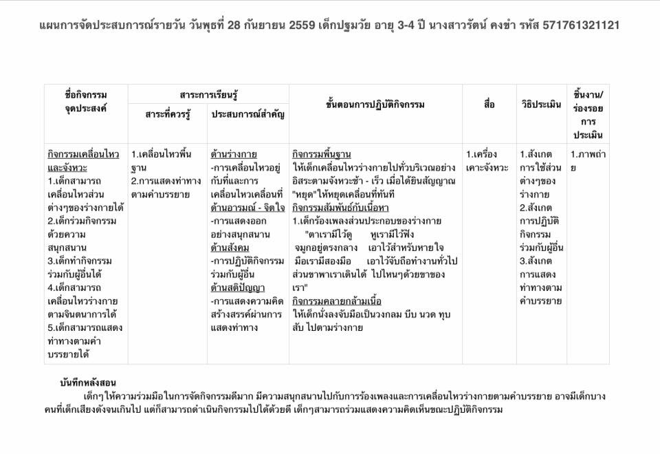 การจัดประสบการณ์การเคลื่อนไหวและจังหวะ