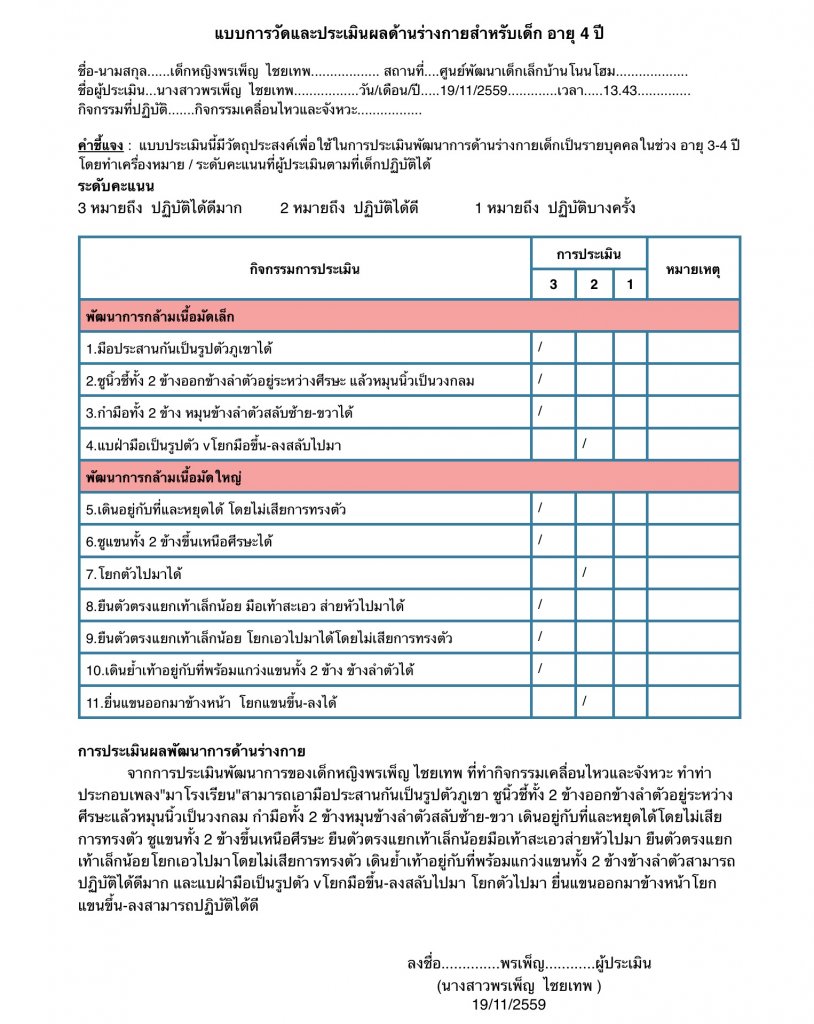 แบบการวัดและเมินผลพัฒนาการด้านร่างกาย