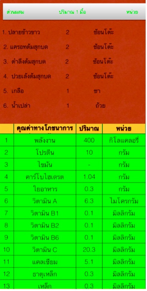 แบบสรุปโภชนาการทางอาหาร