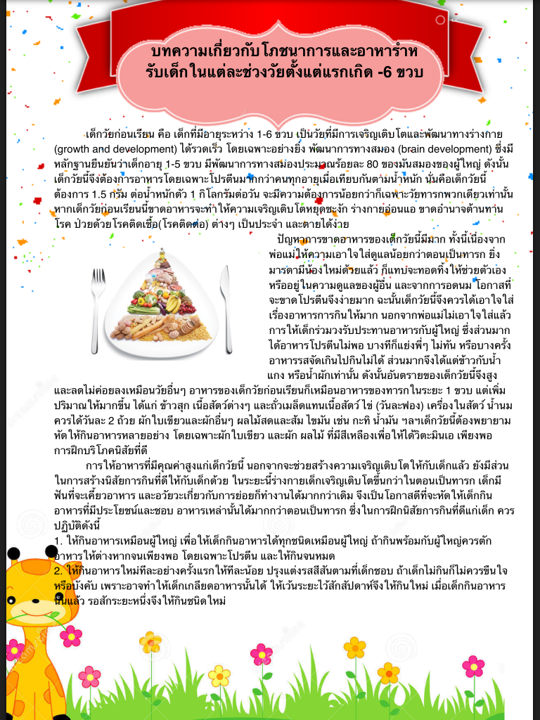 สัปดาห์ที่ 7 บทความเกี่ยวกับโภชนาการสำหรับเด็กในแต่ละช่วง