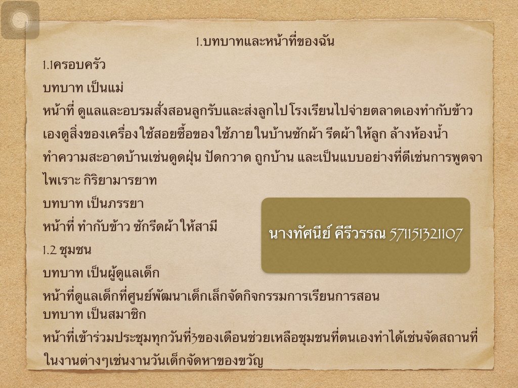 งานชิ้นที่5บทบาทหน้าที่ของตนเองในครอบครัวและชุมชน