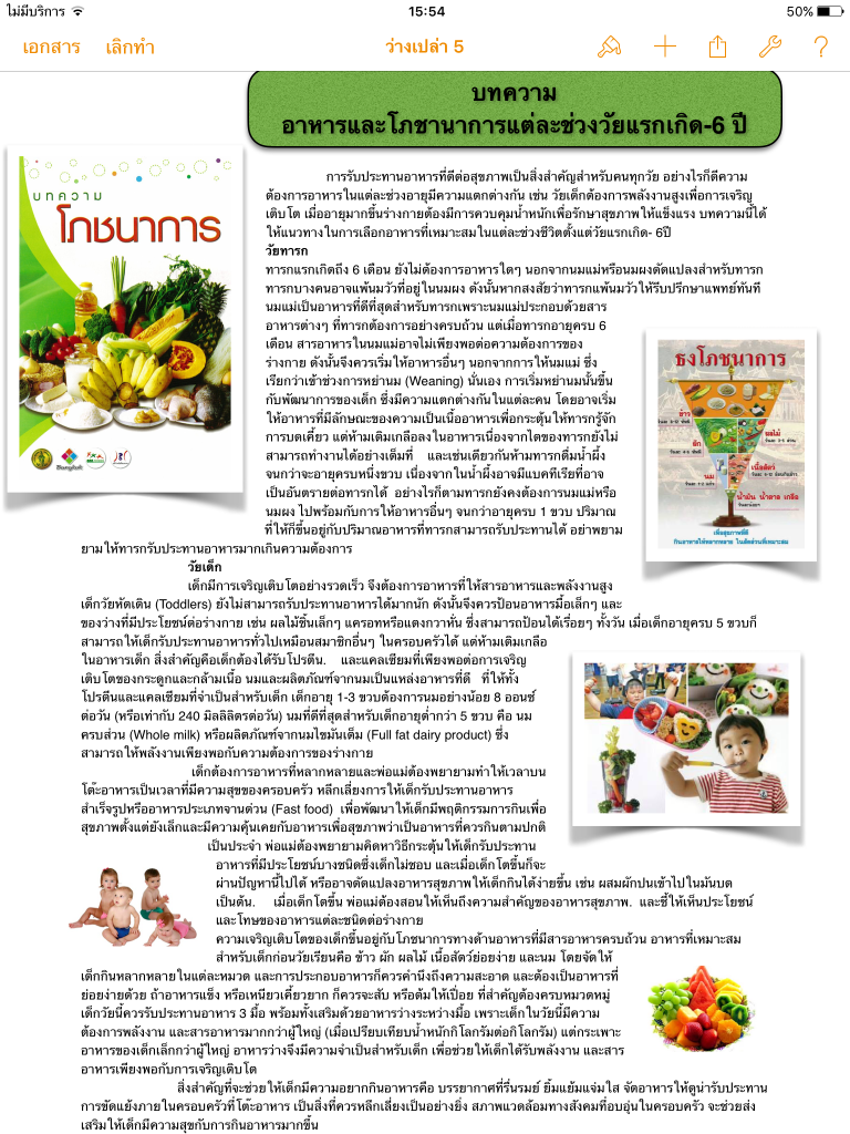งานเดี่ยวบทความเมนูอาหารโภชาการ