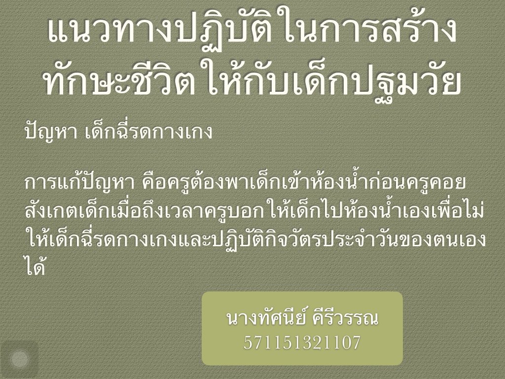 งานชิ้นที่4แนวทางในการสร้างทักษะชีวิตเด็กปฐมวัย