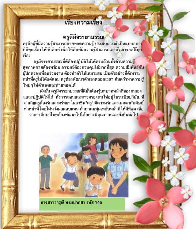 เรียงความเรื่องครูดีมีจรรยาบรรณ