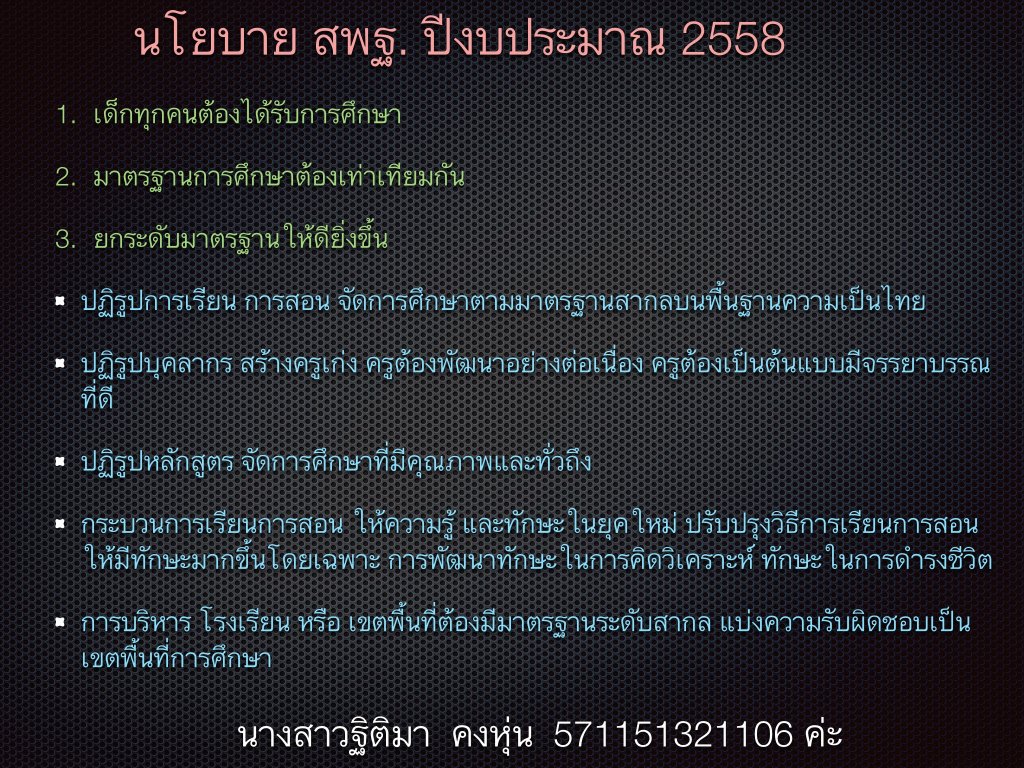 งานเดี่ยวชิ้นที่ 2 นโยบาย สพฐ. ปีงบประมาณ 2558