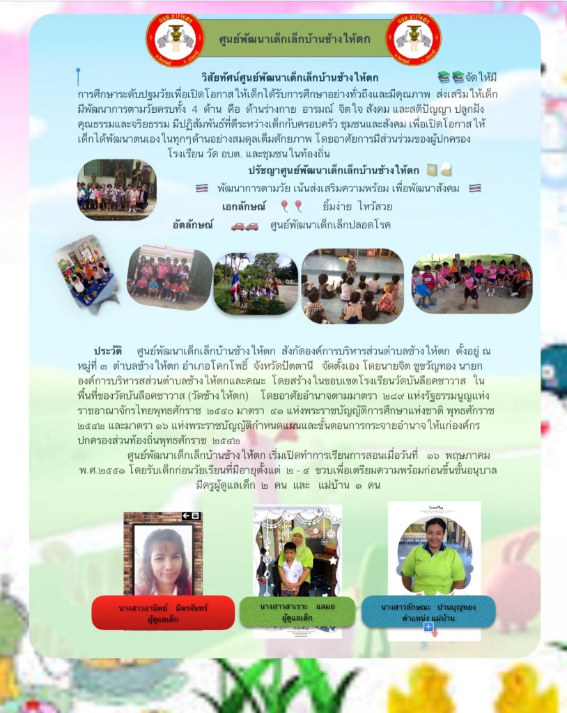 ประวัติศูนย์พัฒนาเด็กบ้านช้างให้ตก