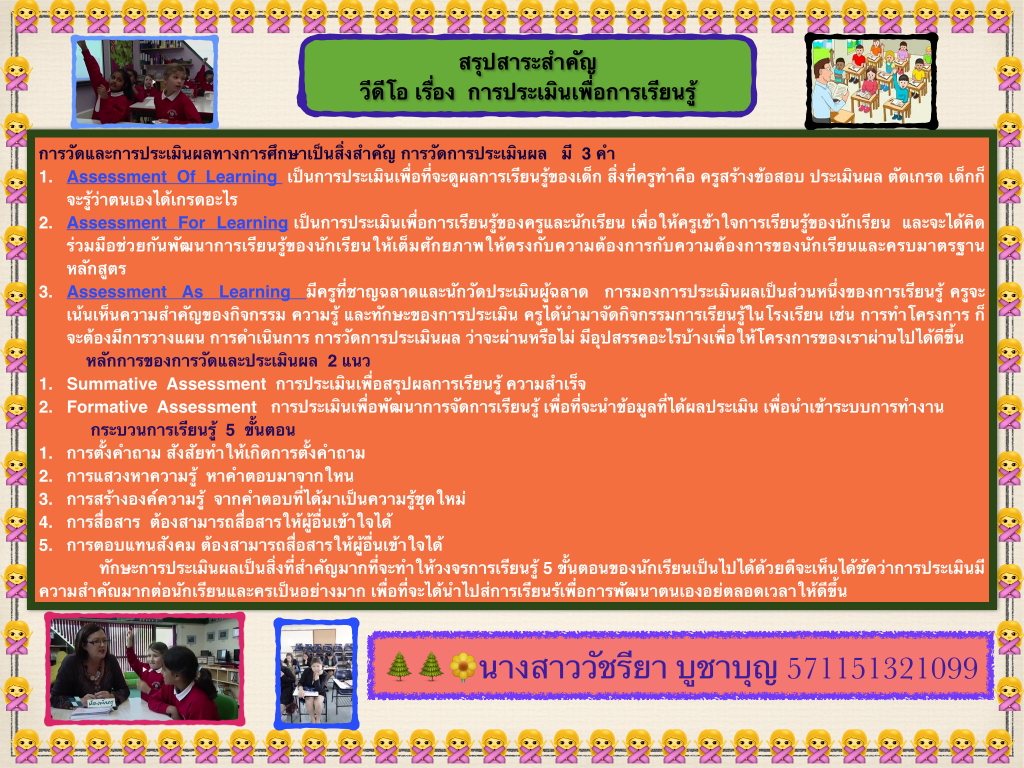 สัปดาห์ที่ 1 สรุปสาระสำคัญ VDO การประเมินเพื่อการเรียนรู้ (งานเดี่ยว)