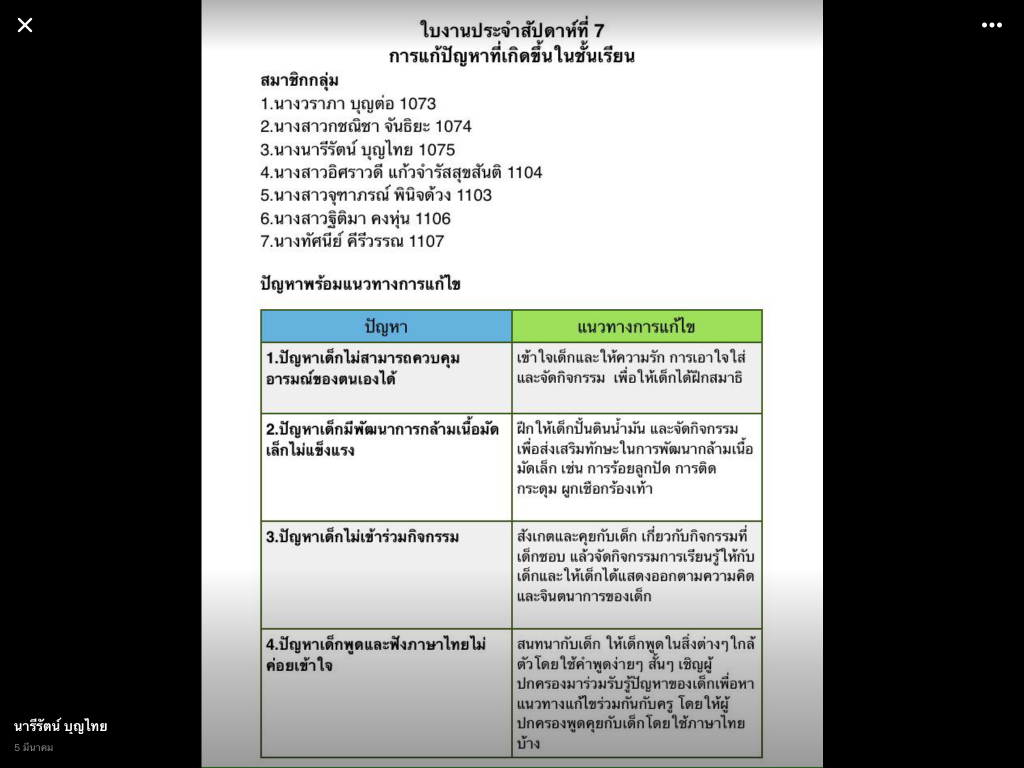 งานชิ้นที่ 5 การแก้ไขปัญหาที่เกิดขึ้นในชั้นเรียน