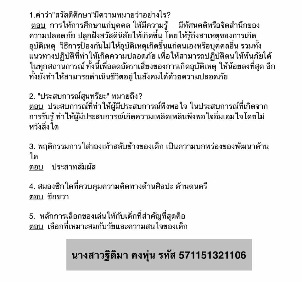 งานเดี่ยวชิ้นที่ 1 ตอบคำถาม 5 คำถามจาก 5 วิชา