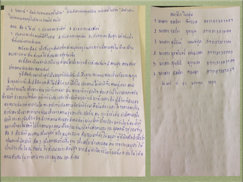 กิจกรรมที่ 1.2 วิเคราะห์กรณีศึกษา”ศีลห้ากับความสงบสุข ในชีวิต”