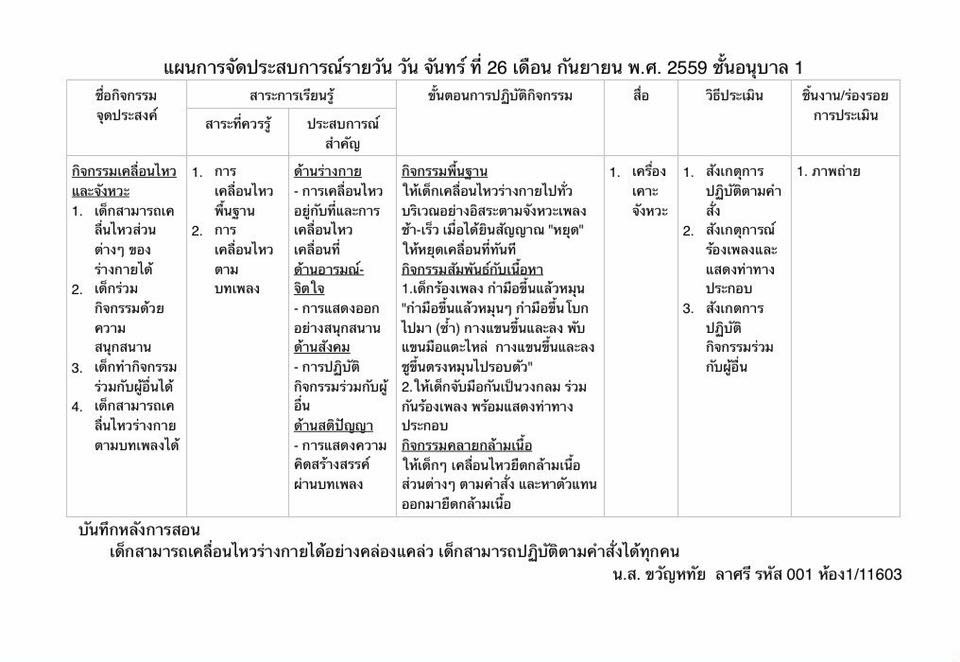 แผนการจัดประสบการณ์เคลื่อนไหวและจังหวะ