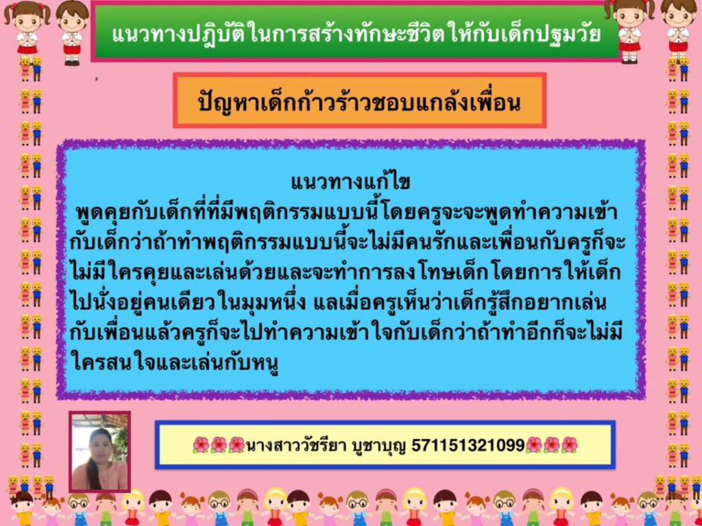 สัปดาห์ที่ 3 แนวทางปฎิบัติในการสร้างทักษะชีวิตให้กับเด็กปฐมวัย(งานเดี่ยว)