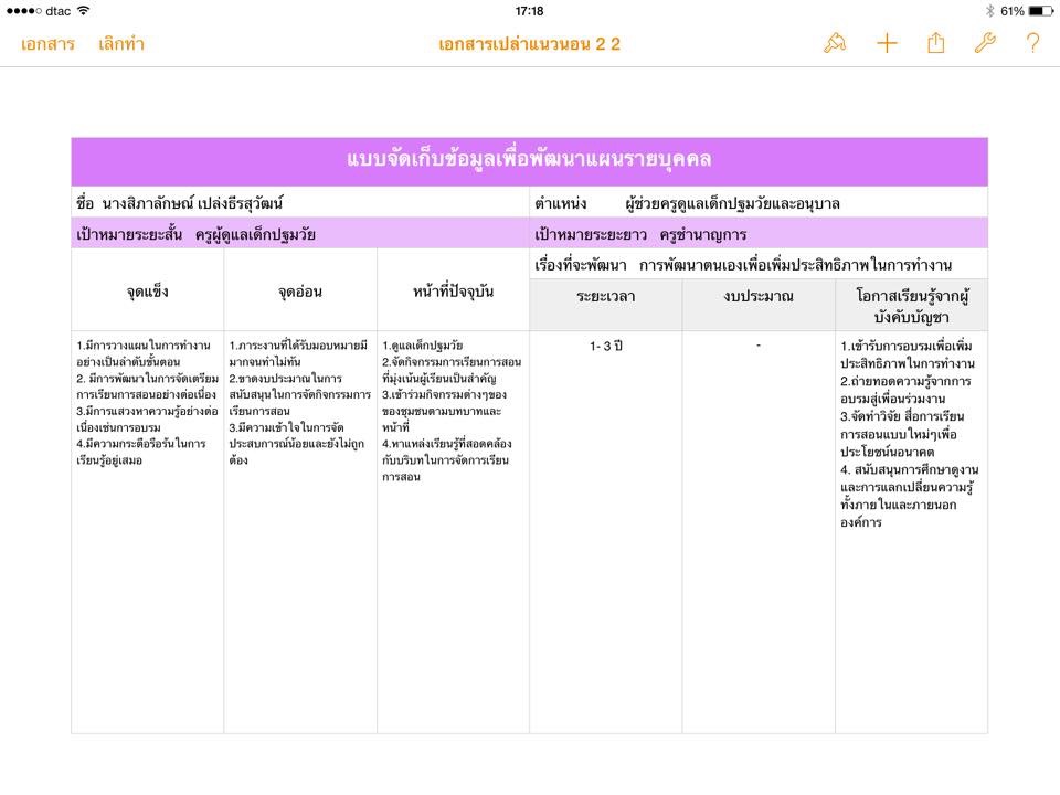 แผนพัฒนาตนเองเพื่อก้าวสู่การเป็นครูปฐมวัยมืออาชีพ