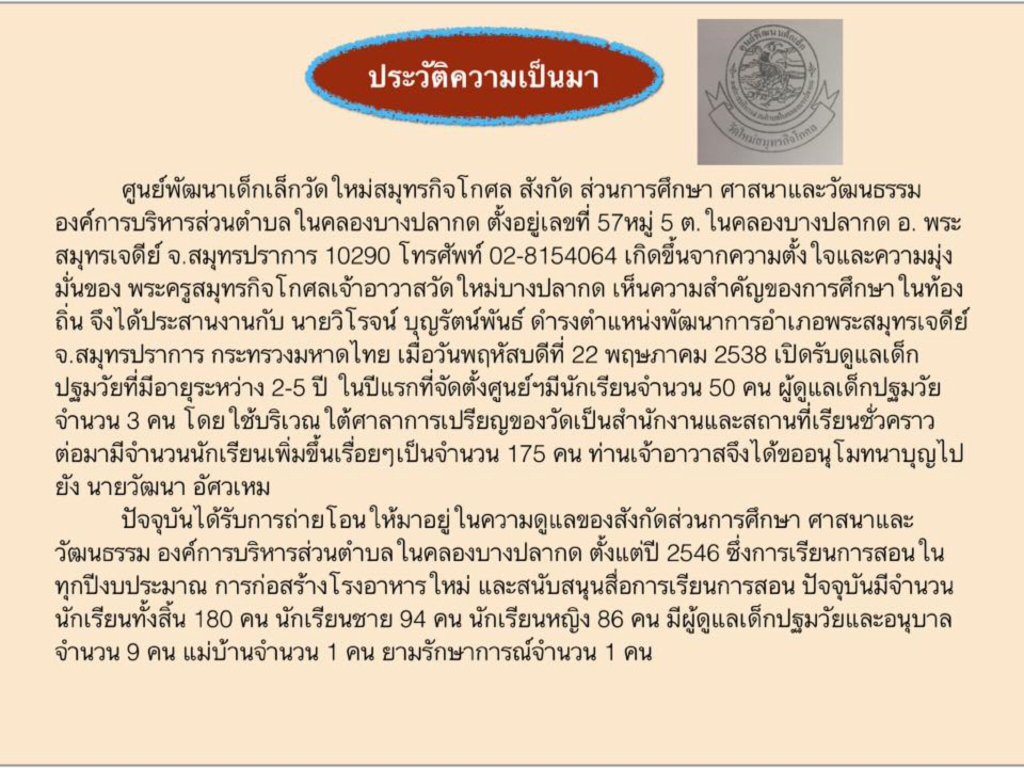 ประวัติศูนย์พัฒนาเด็กเล็ก