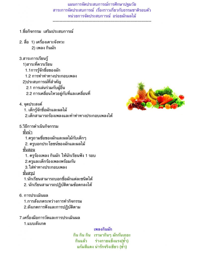 แผนหน่วยอร่อยผักผลไม้