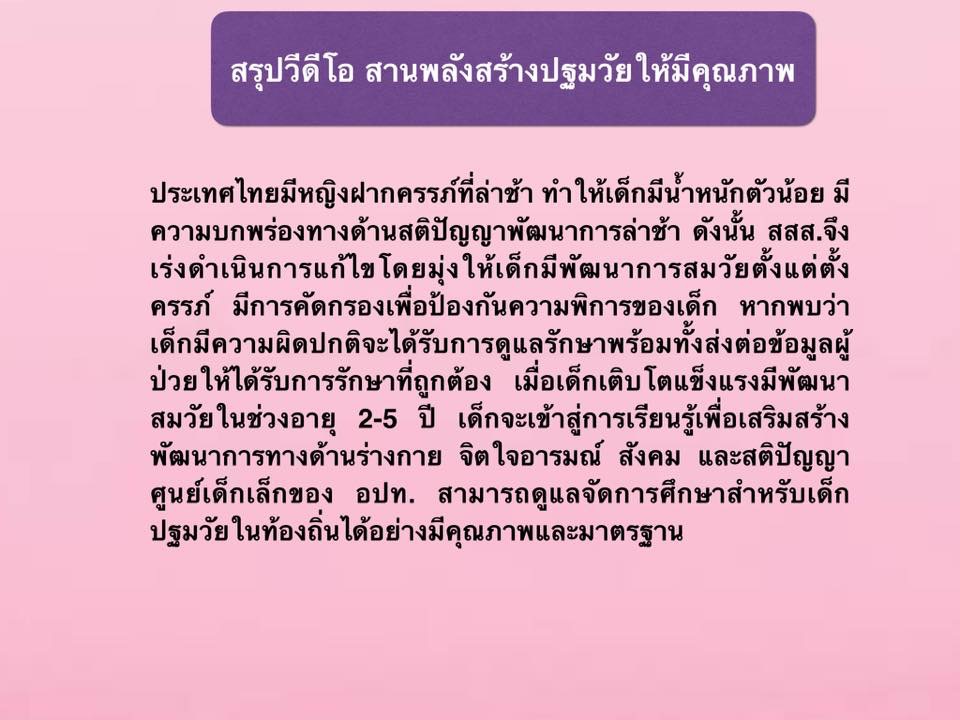 สรุปวีดีโอสานพลังสร้างปฐมวัยให้มีคุณภาพ