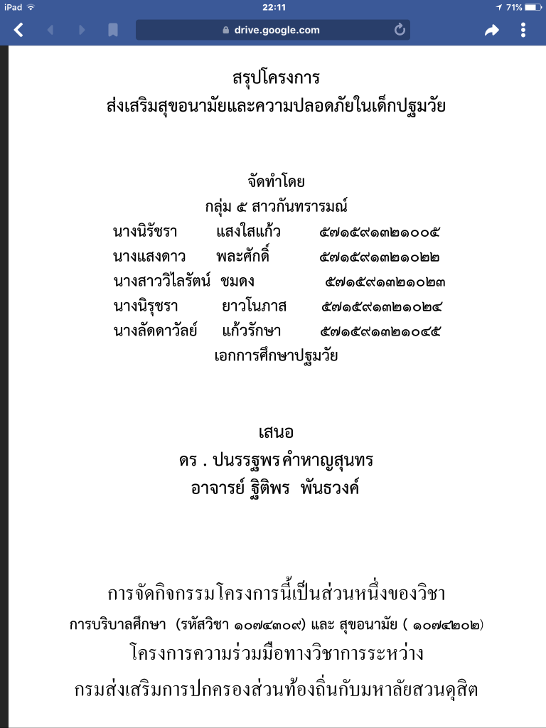 ปกโครงการส่งเสริมสุขอนามัยและความปลอดภัยในเด็กปฐมวัย