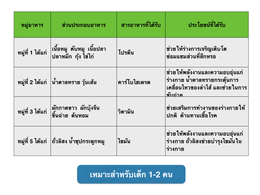 สารอาหารที่เด็กได้รับจากเมนูอาหารสุกี้น้ำทะเล