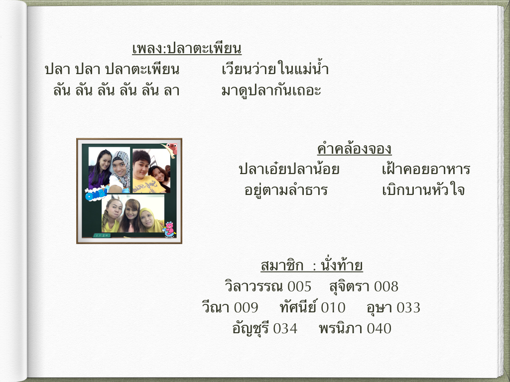 สัปดาห์ที่ 2 :เพลงและคำคล้องจอง