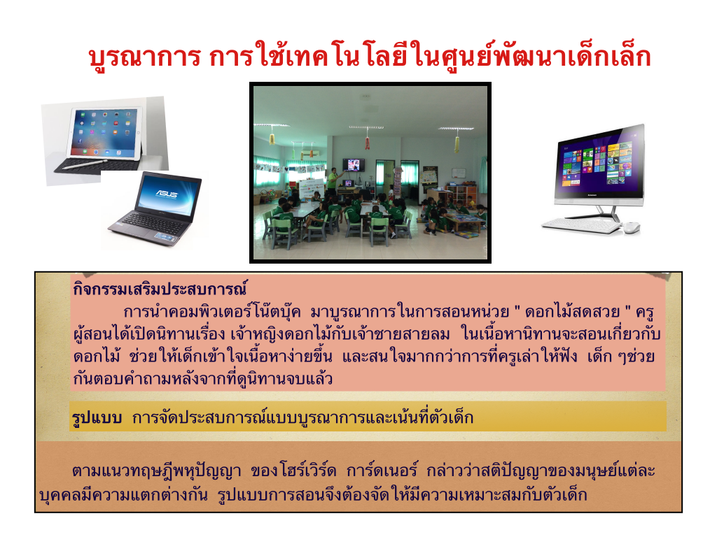 งานเดี่ยว/บูรณาการ การใช้เทคโนโลยีในศูนย์พัฒนาเด็กเล็ก