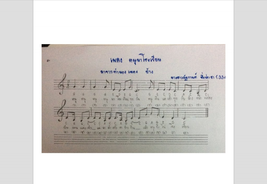 โน๊ตเพลง หนูมาโรงเรียน (ทำนองเพลงช้าง)