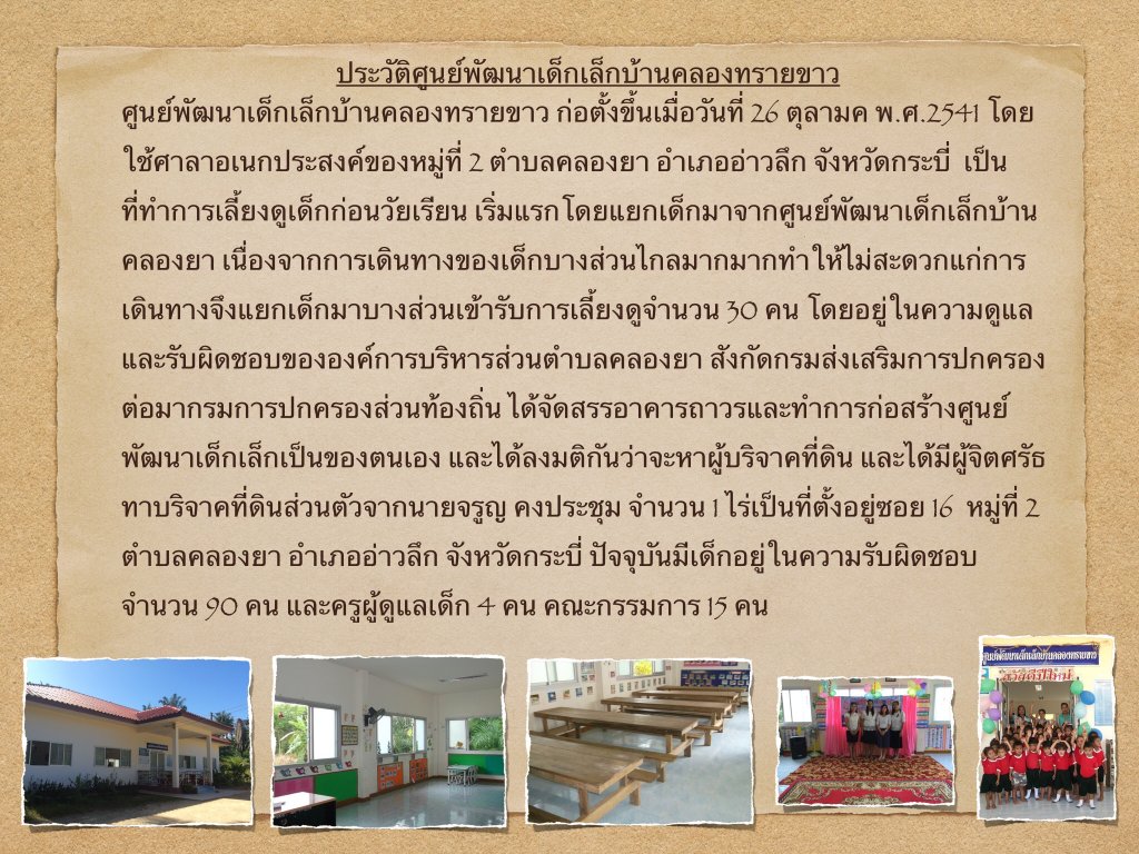 ประวัติศูนย์พัฒนาเด็กเล็กบ้านคลองทรายขาว