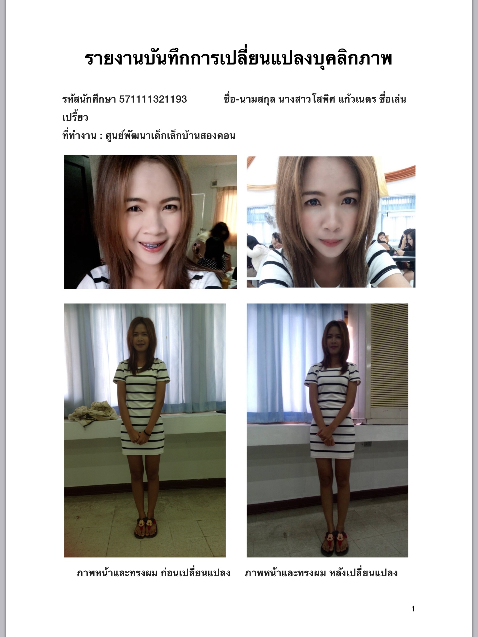 รายงานการพัฒนาบุคคลิกภาพ