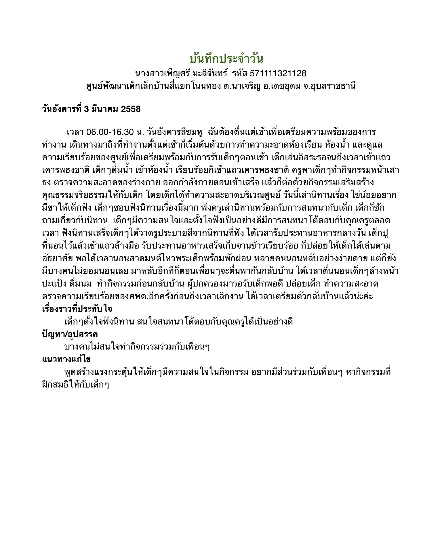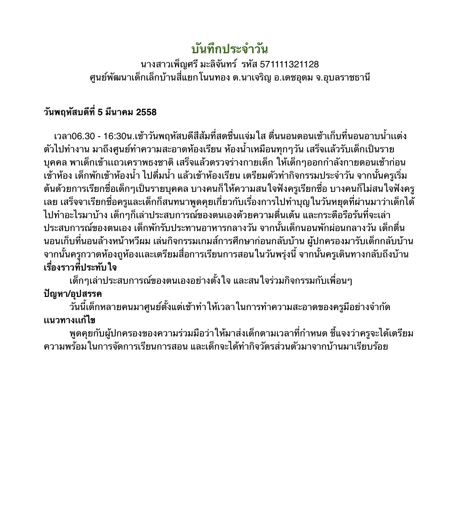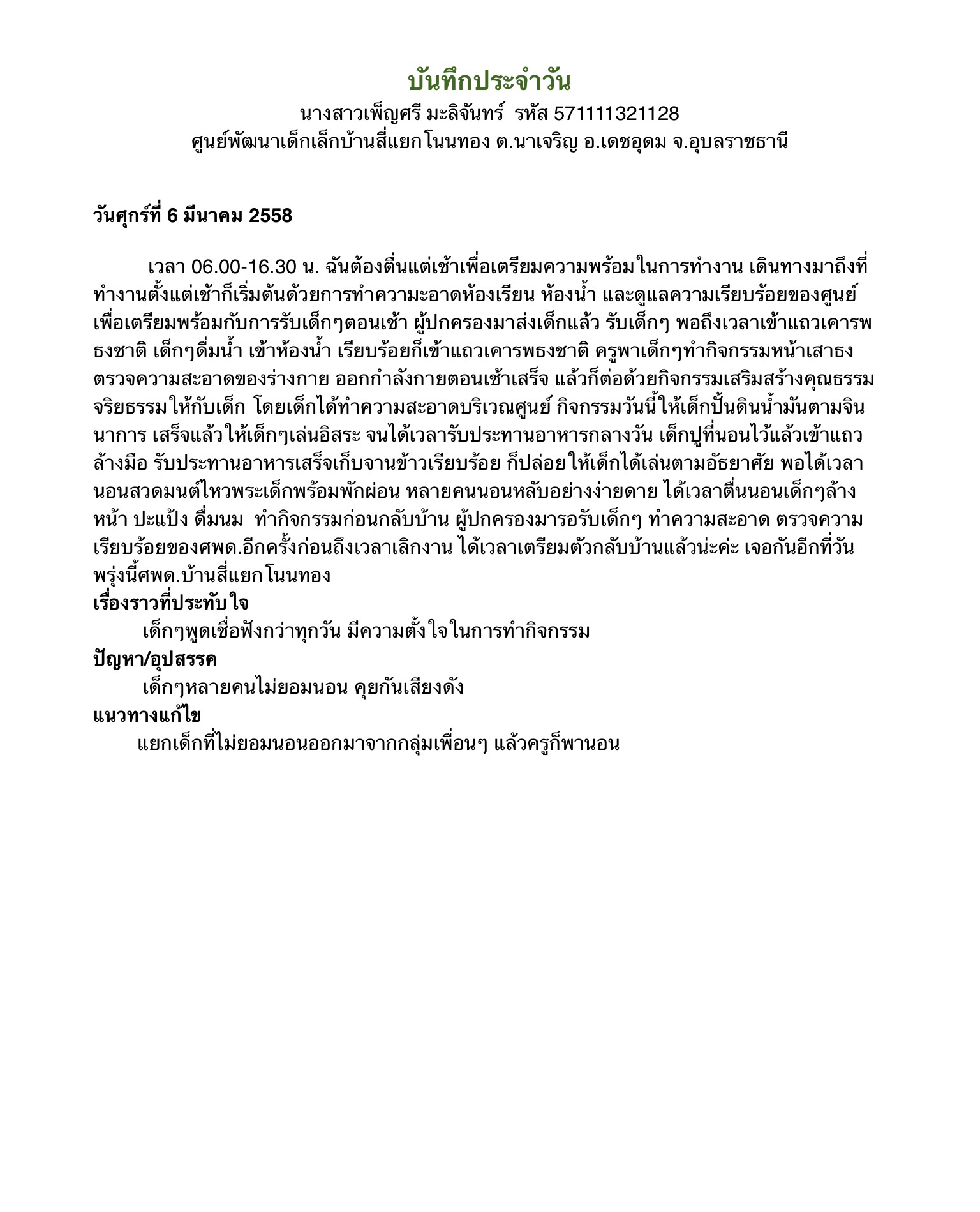 บันทึกการปฏิบัติงานประจำวัน
