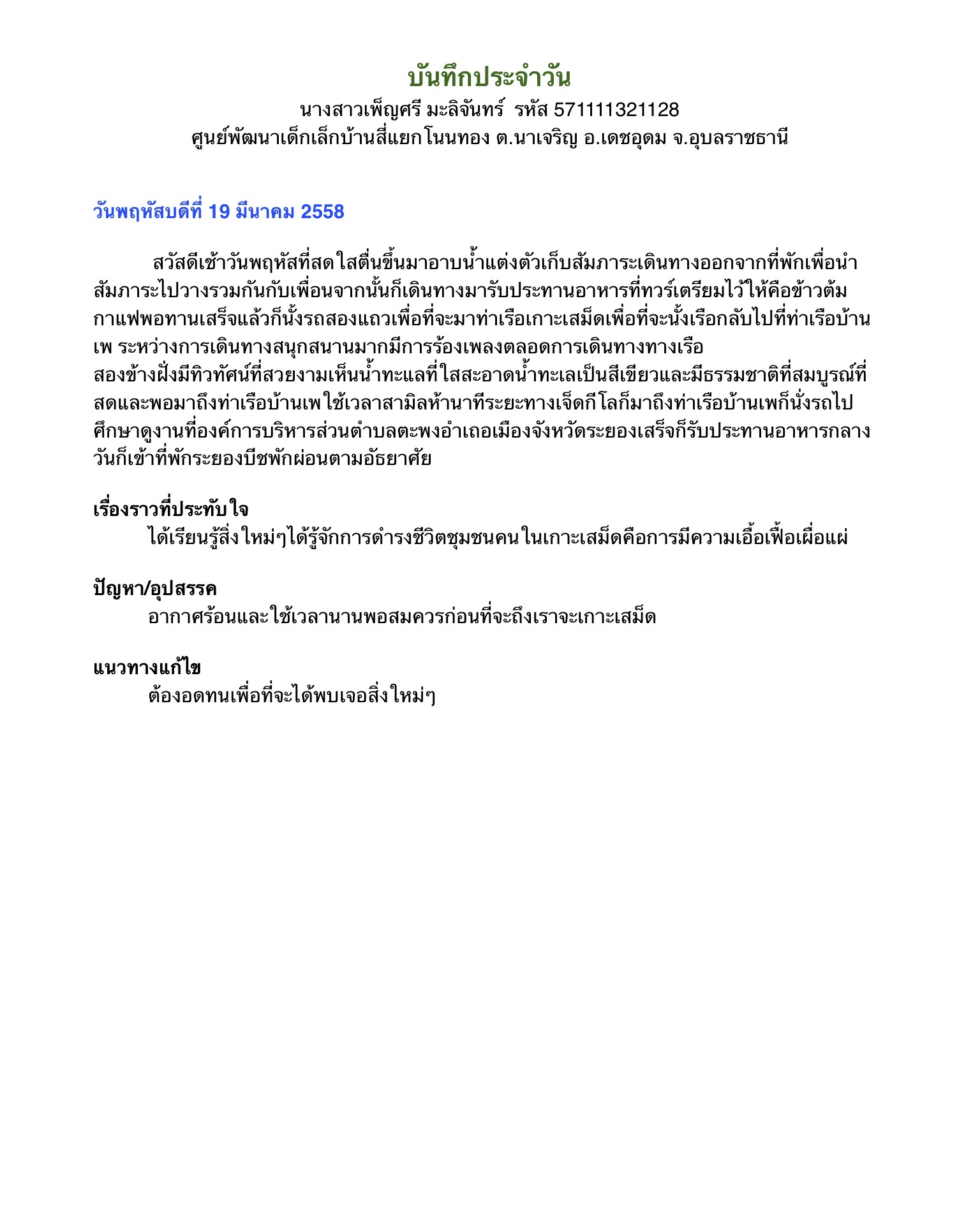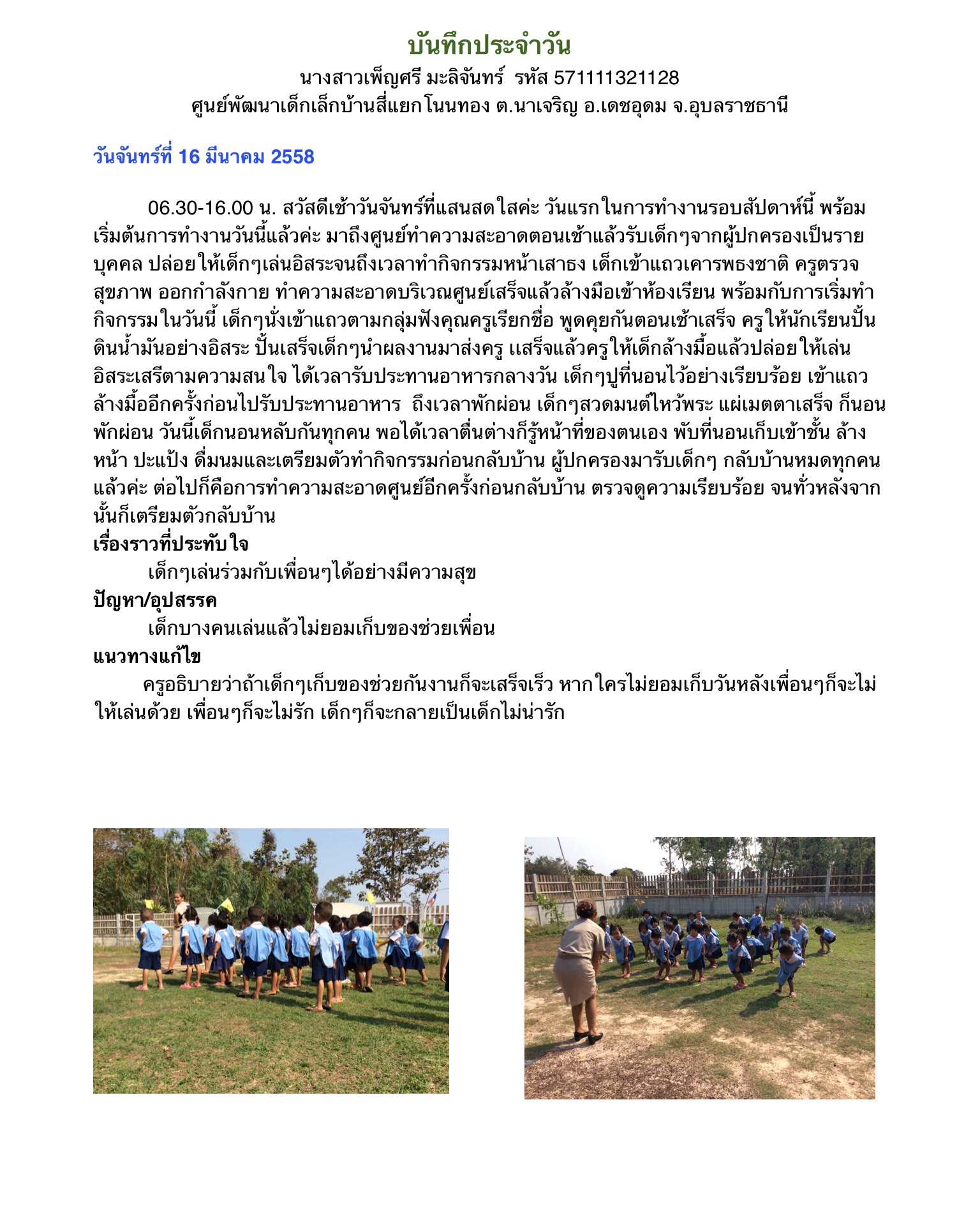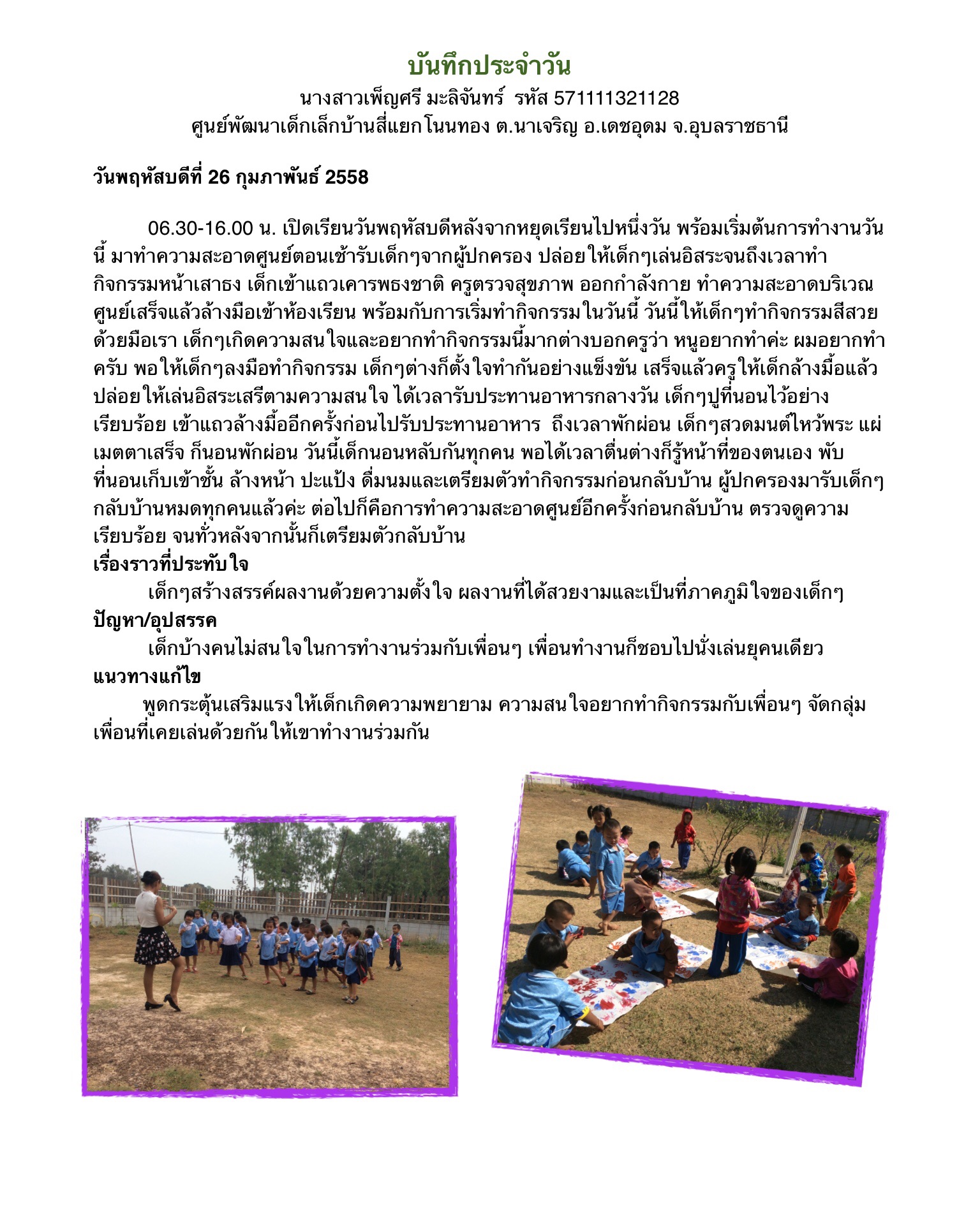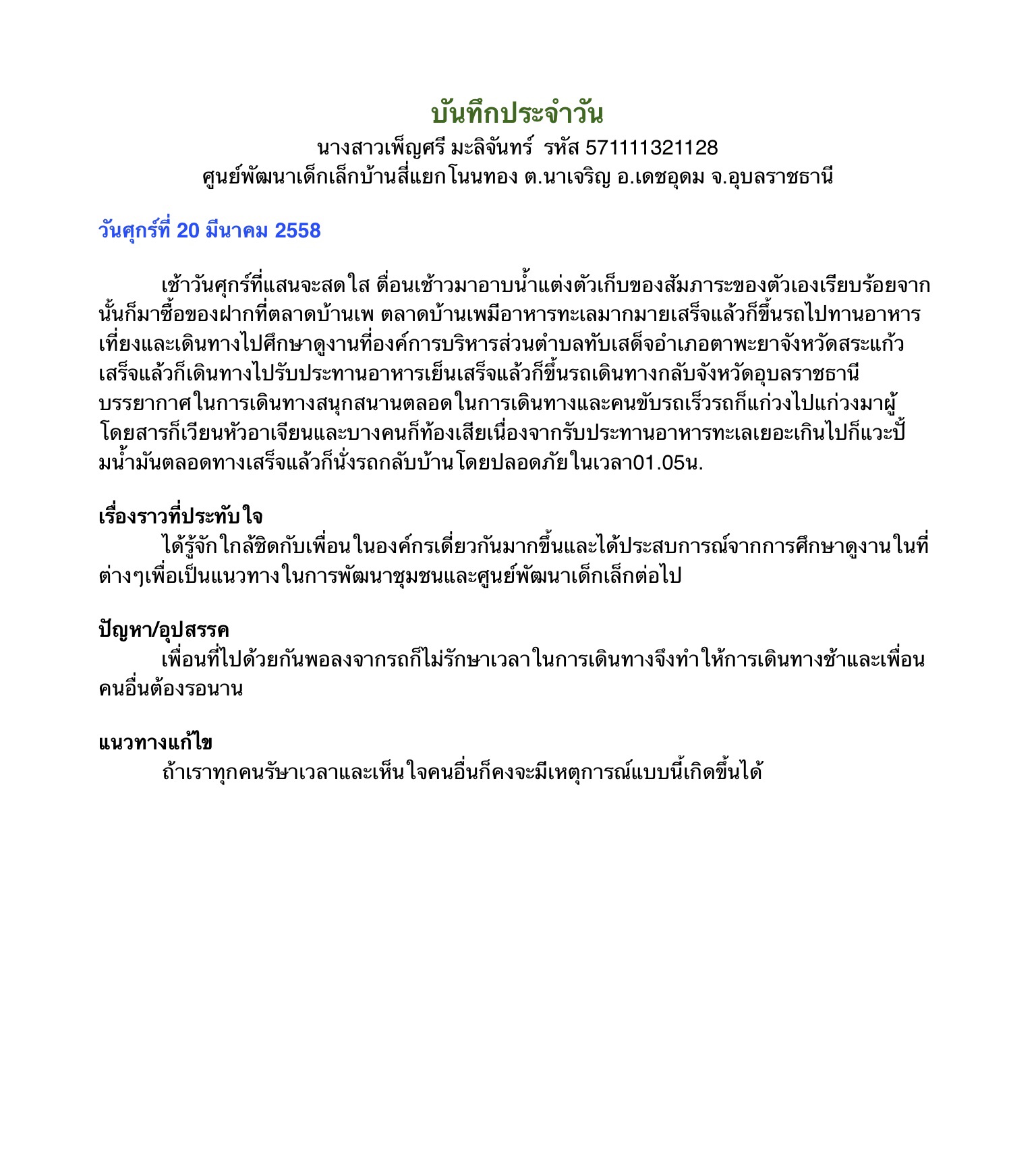 บันทึกการปฏิบัติงานประจำวัน