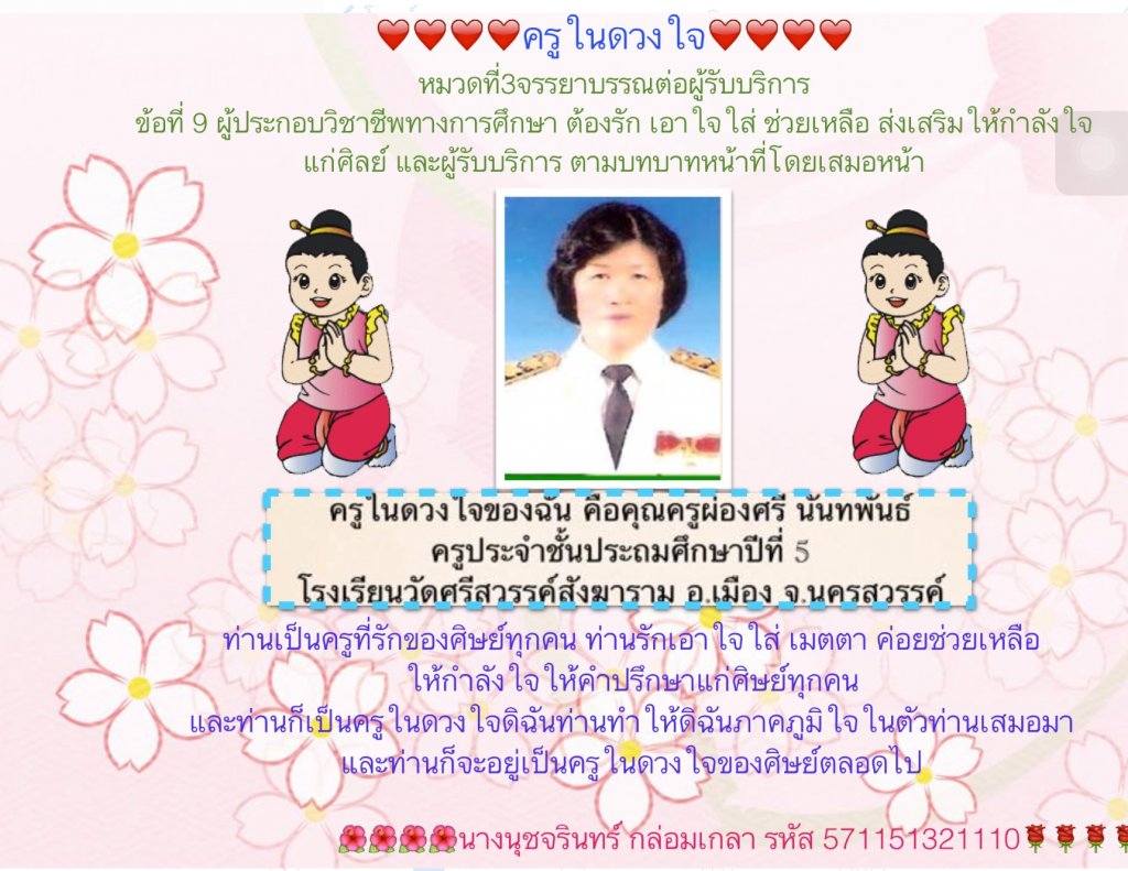 ครูในดวงใจ สัปดาห์ที่ 14ภาคเรียนที่ 2