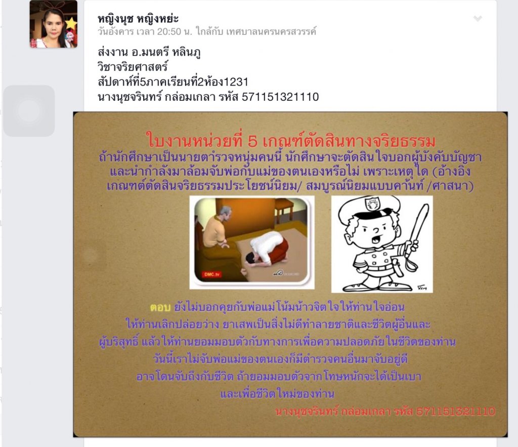 ใบงานหน่วยที่ 5 เกณฑ์ตัดสินทางจริยธรรม