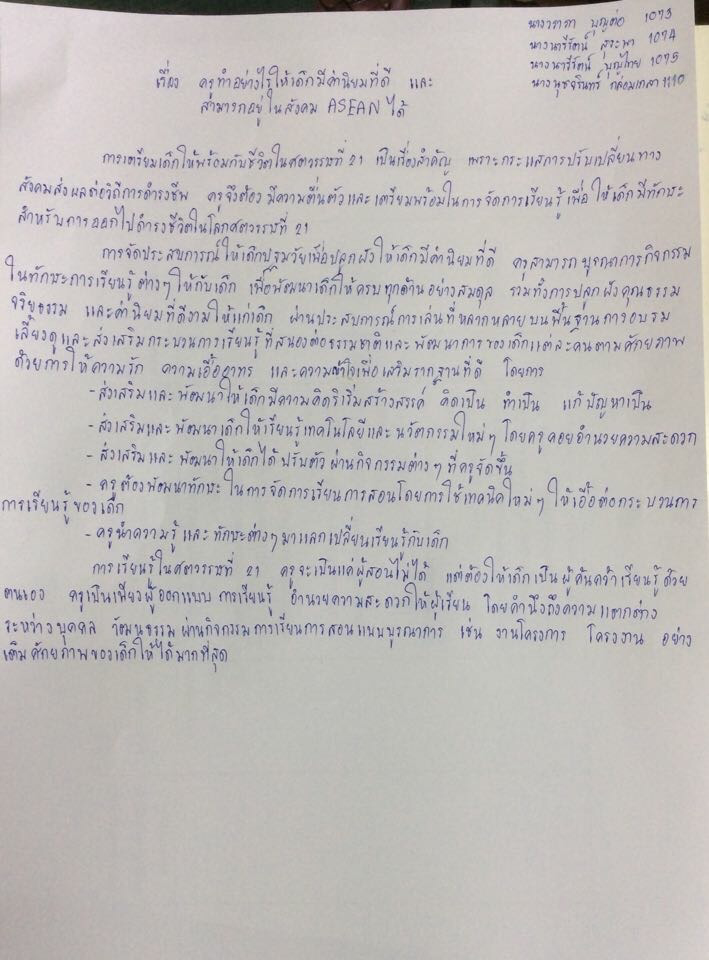 ครูทำอย่างไรให้เด็กมีค่านิยมที่ดีสามารถอยู่ในสังคม ASEAN ได้ สัปดาห์ที่ 13