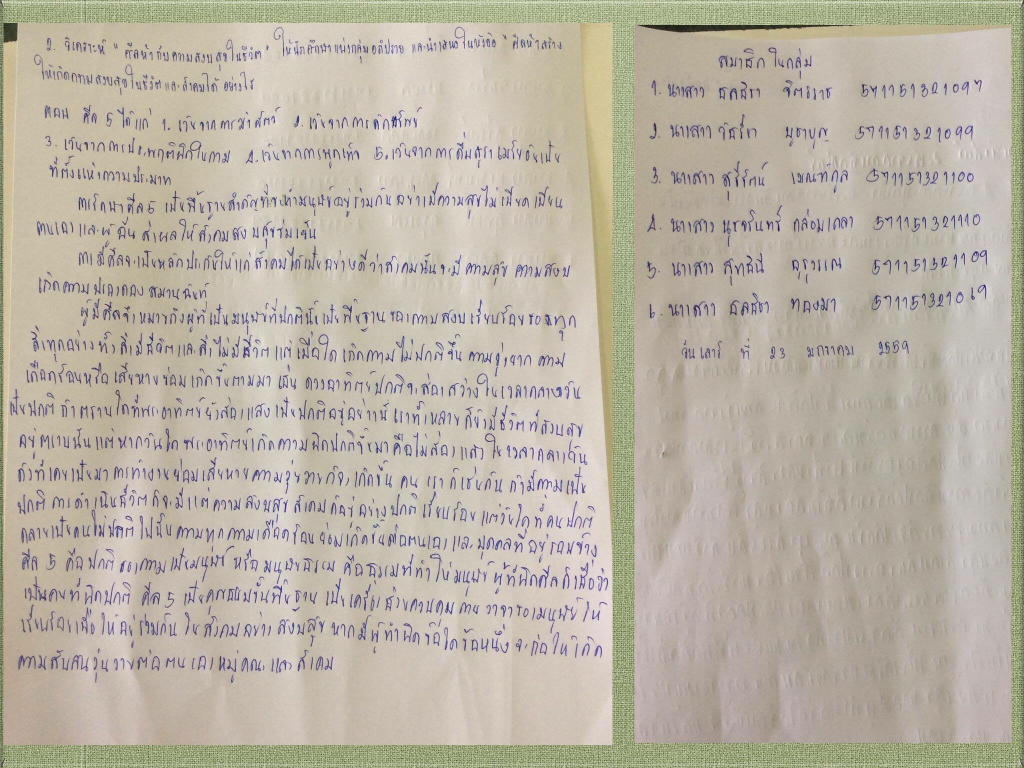 วิเคราะห์ศีลกับความสงบสุขในชีวิต งานกลุ่ม (ส่งเป็นกระดาษ)