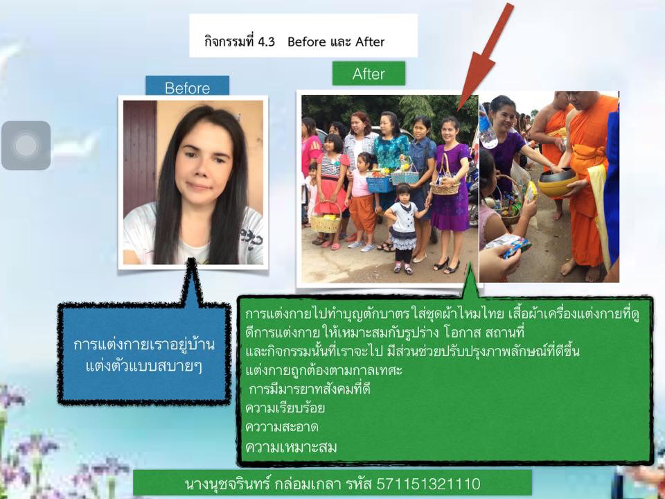 สัปดาห์ที่ 8 กิจกรรมที่ 4.3 Before และ After ออกแบบการแต่งกายไปงานเลี้ยง