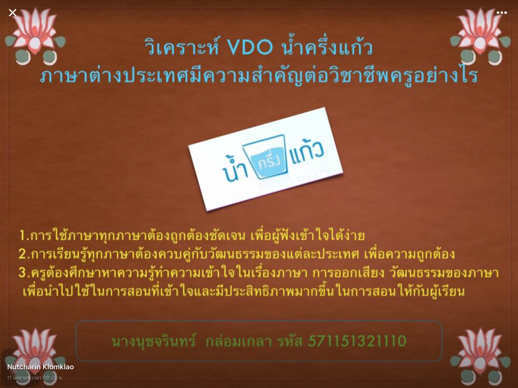 สัปดาห์ที่ 12 วิเคราะห์ VDO เรื่องน้ำครึ่งแก้ว