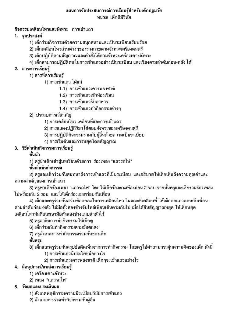 แผนการจัดประสบการณ์ เพลงที่แต่งเอง