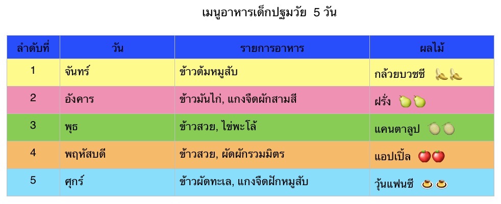 เมนูอาหารหนูน้อย