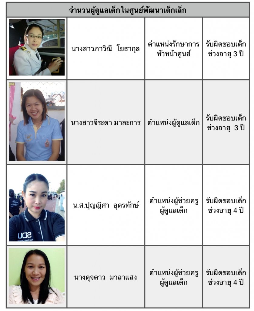 ผู้ดูแลเด็กภายในศูนย์ จำนวน 4 คน