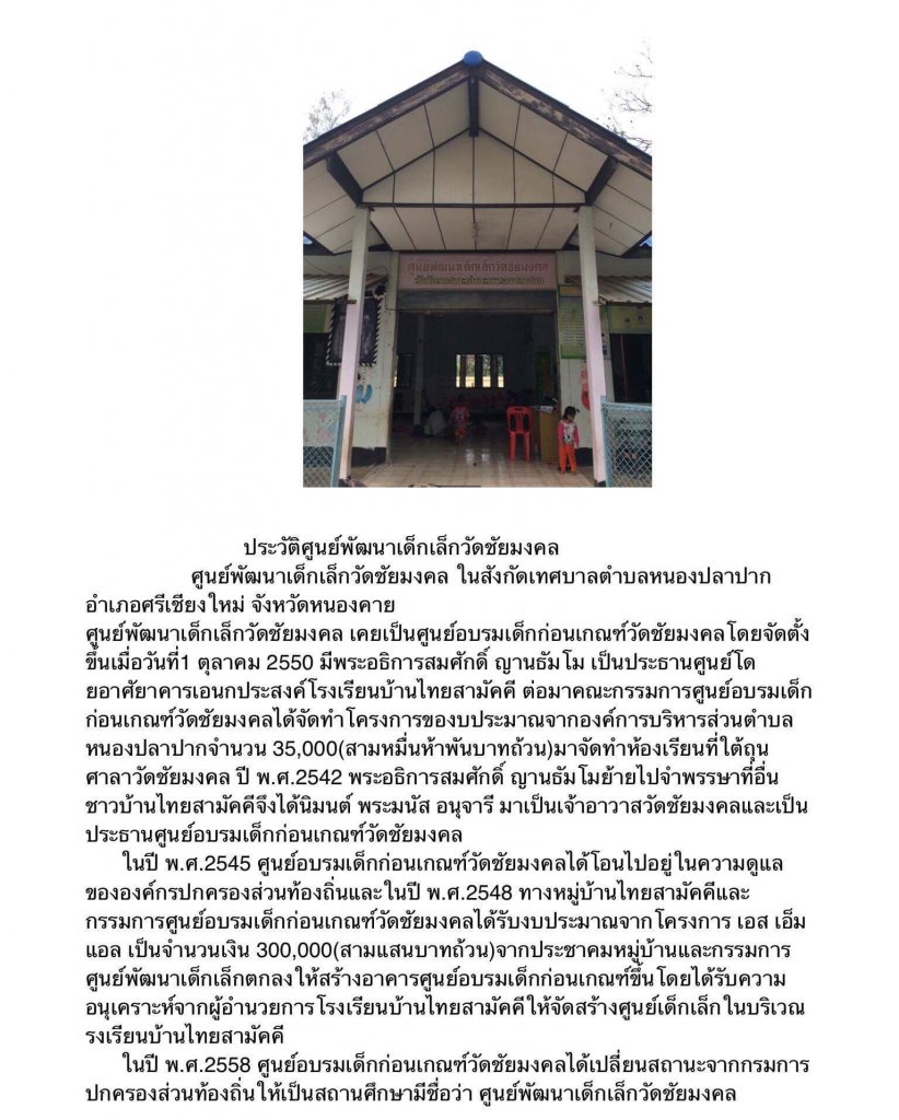 ประวัติและความเป็นมาศูนย์พัฒนาเด็กเล็กวัดชัยมงคล