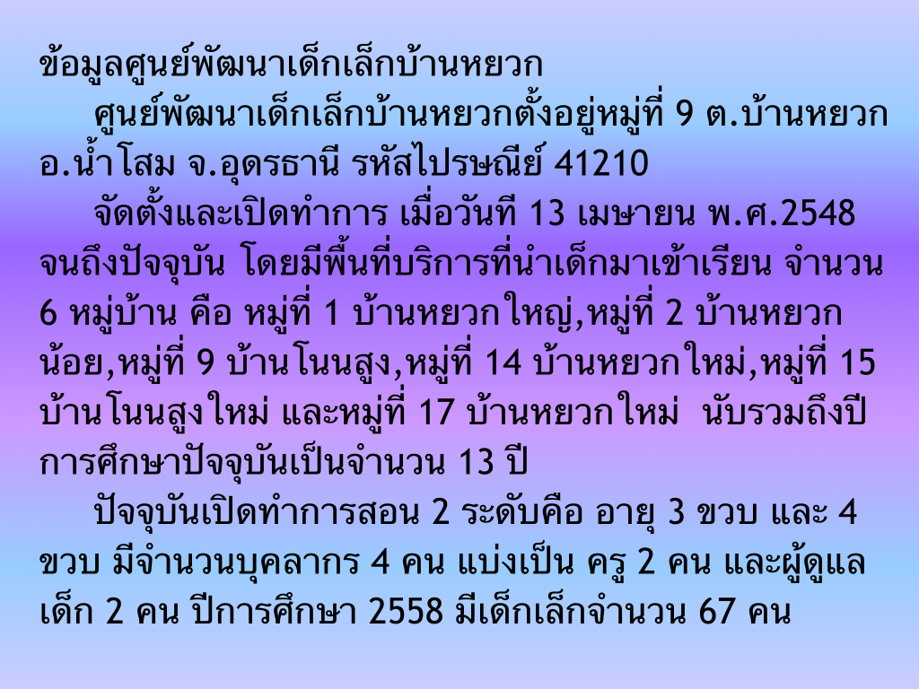 ความเป็นมาศูนย์พัฒนาเด็กเล็กบ้านหยวก