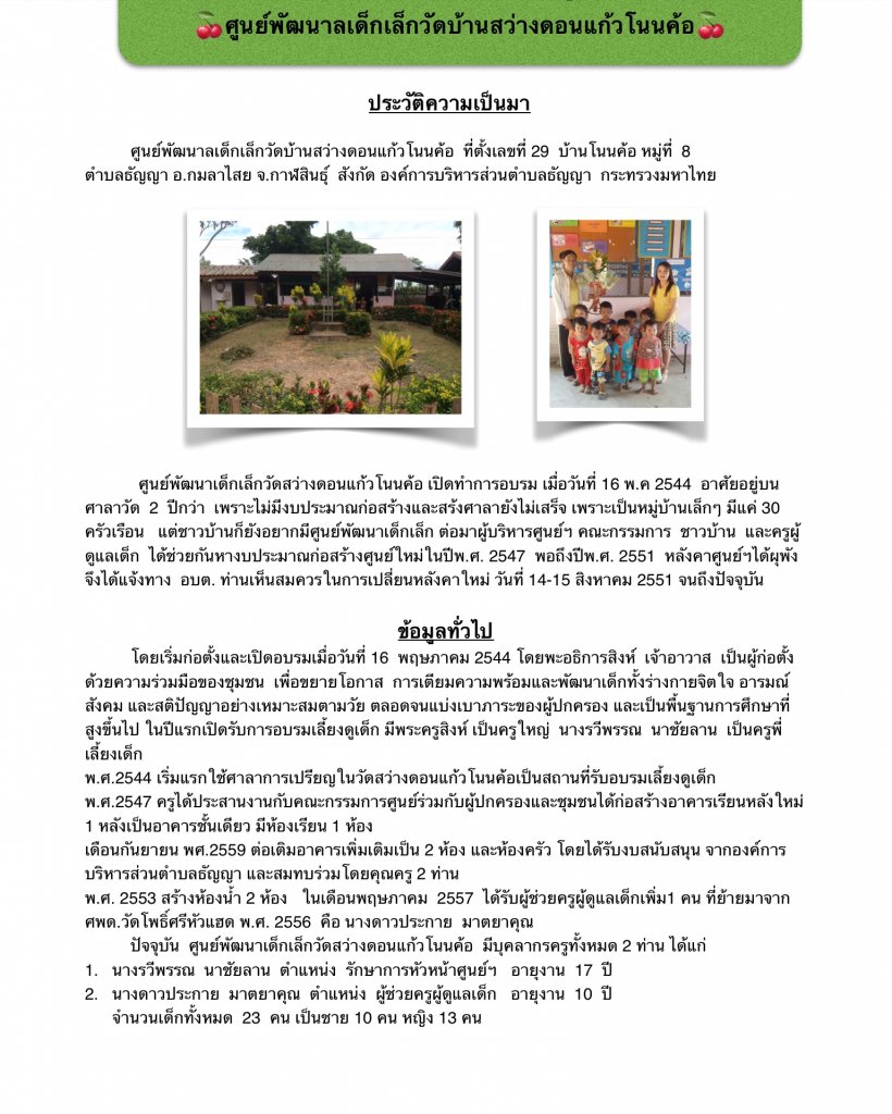 ประวัติศูนย์พัฒนาเด็กเล็กวัดสว่างดอนแก้วโนนค้อ