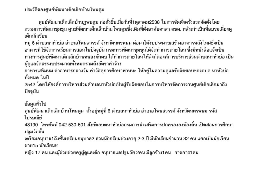 ประวัติศูนย์พัฒนาเด็กเล็กบ้านโพนตูม