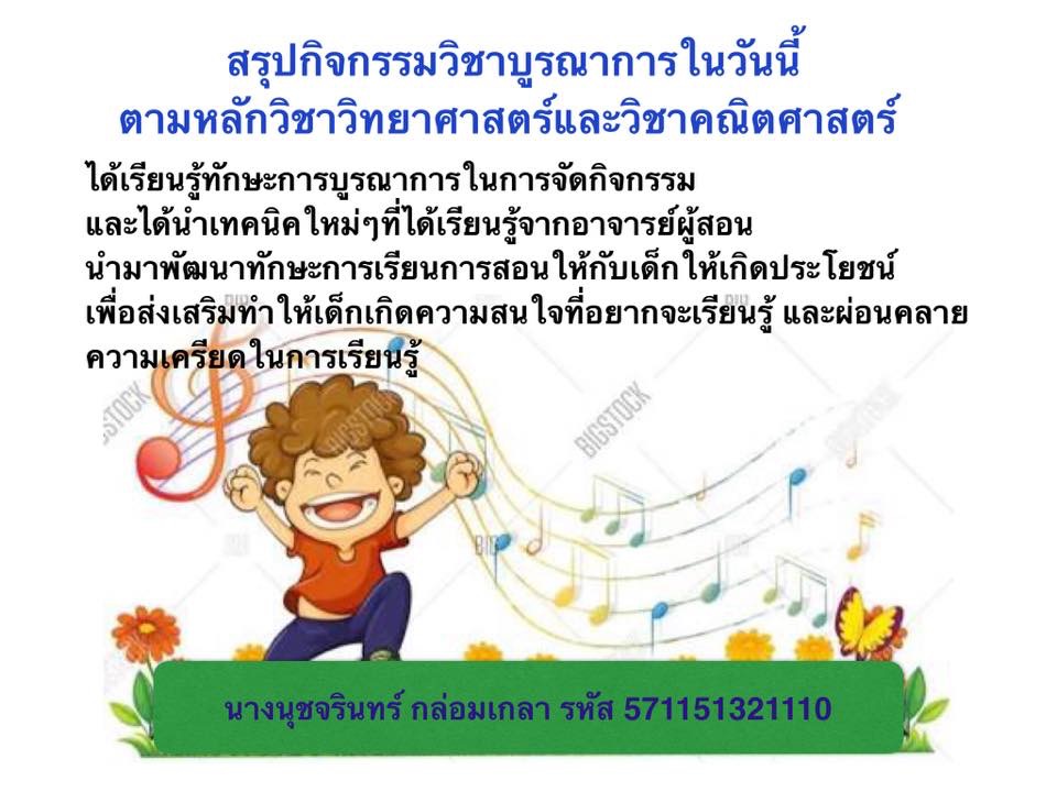 สัปดาห์ท่ี 2 สรุปกิจกรรมวิชาบูรณาการในวันนี้ตามหลักวิชาวิทยาศาสตร์&วิชาคณิตศาสตร์