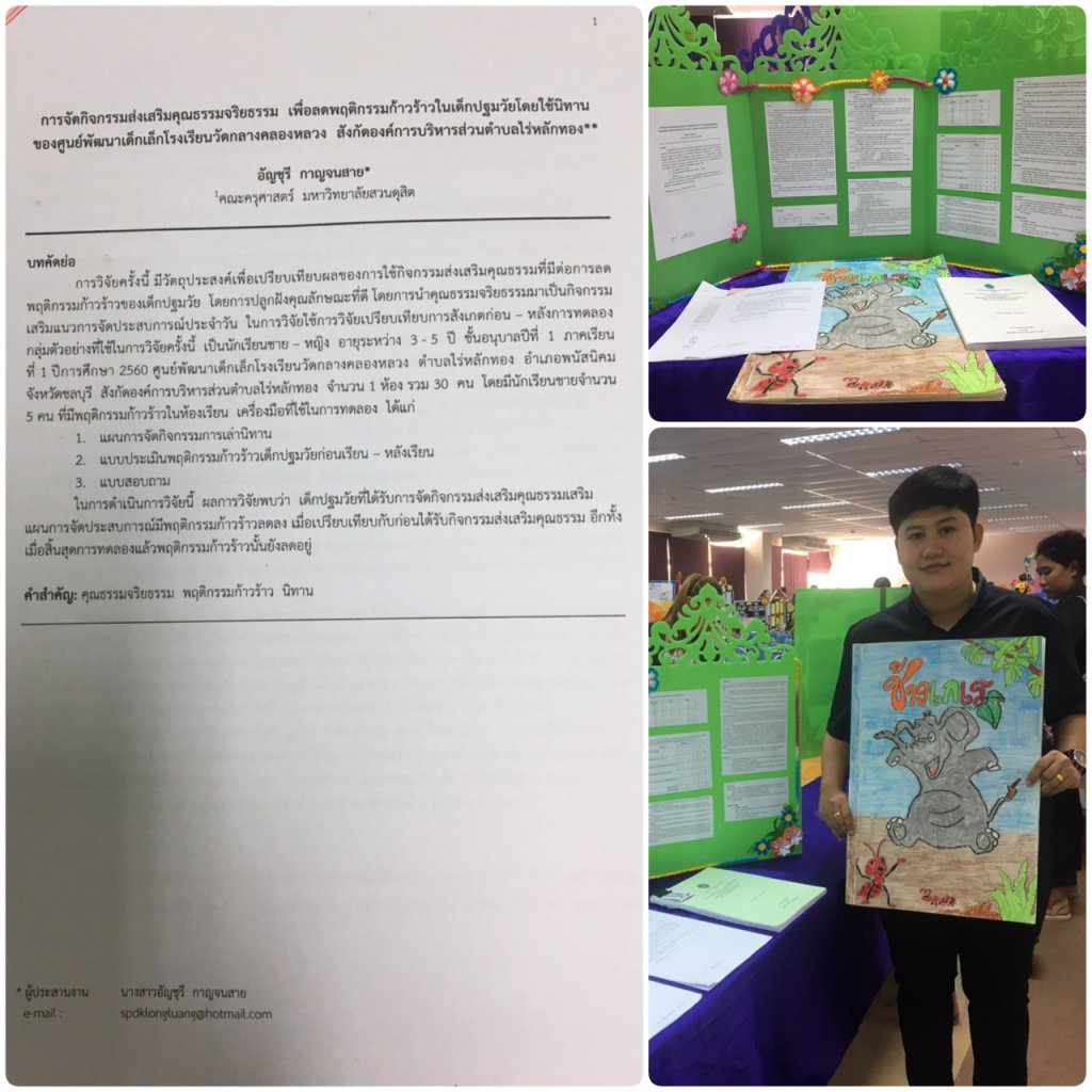 2. งานวิจัย "กิจกรรมส่งเสริมคุณธรรมจริยธรรมเพื่อลดพฤติกรรมก้าวร้าวในเด็กปฐมวัย"