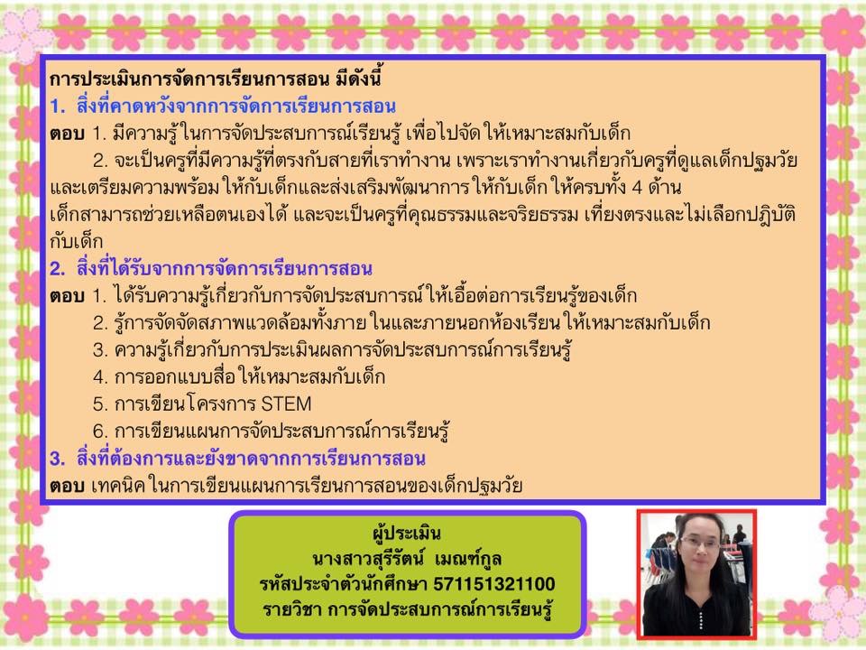 สัปดาห์ที่ 15 เรื่อง การประเมินการจัดการเรียนการสอน (งานเดี่ยว)