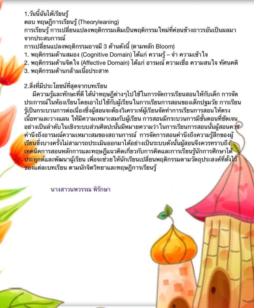 สัปดาห์ที่2 สรุปทฤษฎีการเรียนรู้