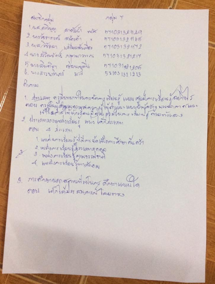 งานในชั้นเรียนสัปดาห์ที่9 เรื่องการจัดสิ่งแวดล้อมเพื่อการเรียนรู้