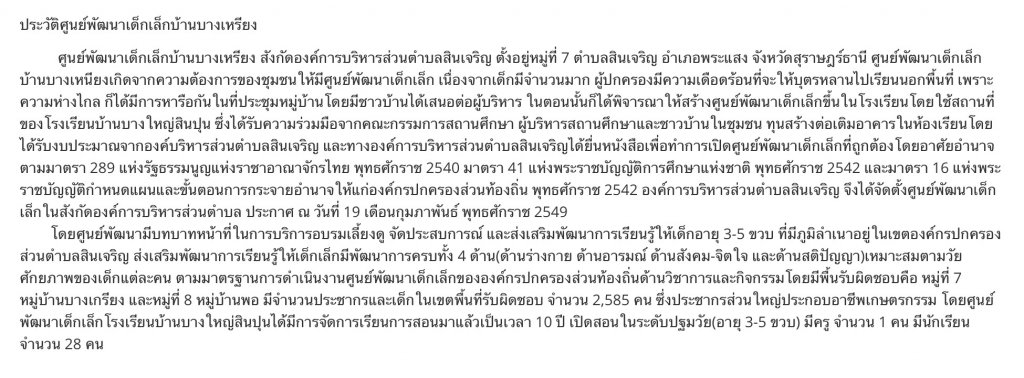 ความเป็นมาและข้อมูลทั่วไปของศูนย์พัฒนาเด็กเล็กบ้านบางเหรียง