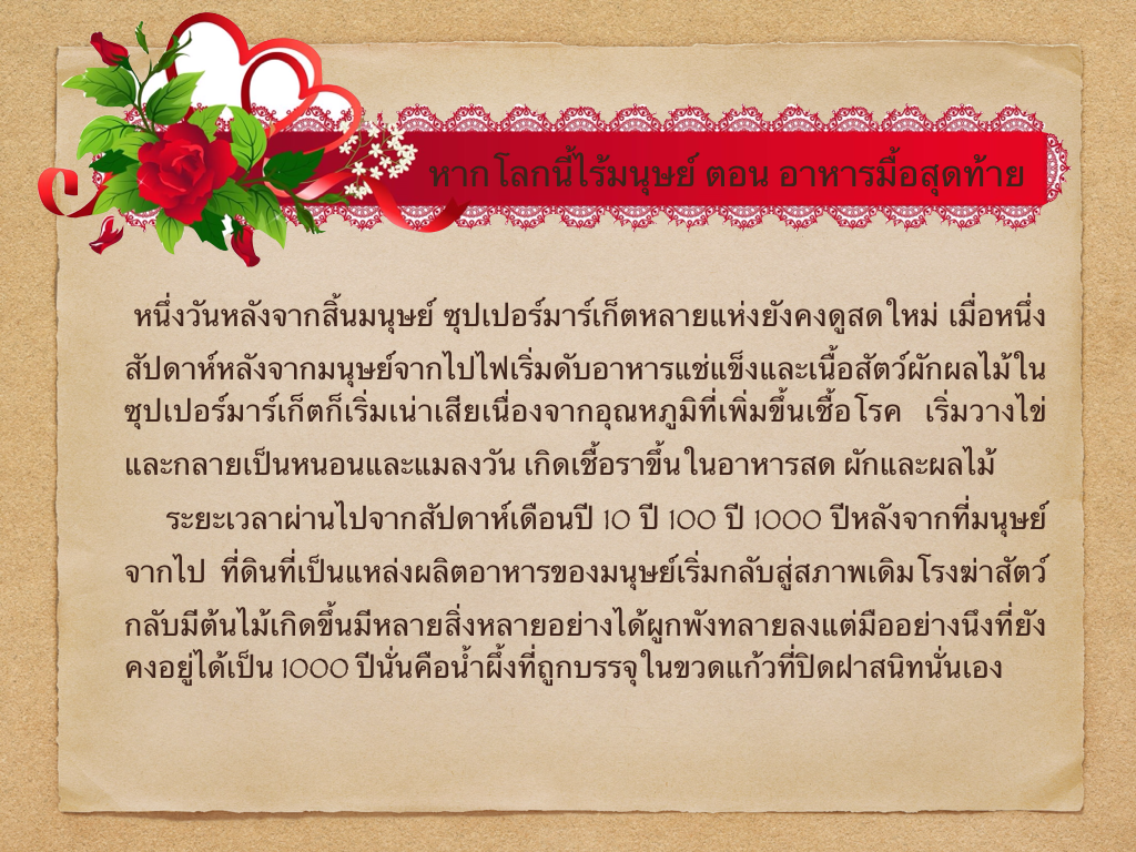 สรุปVDO. เรื่องหากโลกนี้ไร้มนุษย์ ตอนอาหารมื้อสุดท้าย