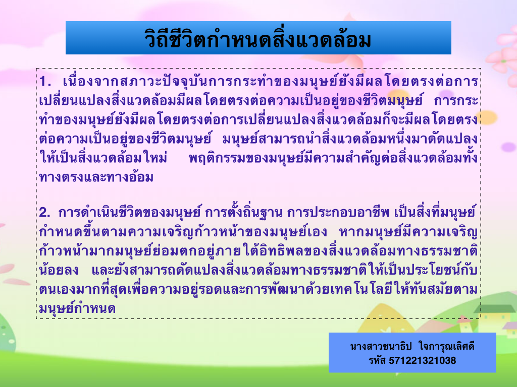 วิถีชีวิตกำหนดสิ่งแวดล้อม